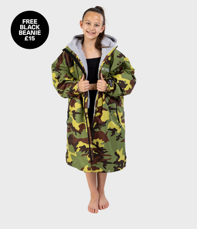 Our colourful range of kids Dryrobe® Advance changing robes are designed to let your children get active outdoors all year round, allowing them to change anywhere, whilst protecting them from the elements. This kids changing robe is weatherproof and comes equipped with a fast-drying, super-warm lining making it the ultimate waterproof changing robe for surfing, swimming, camping, outdoor adventures or long days spent at the beach. Keep them doing the things they love outdoors all year round with Dryrobe®, the world's most versatile change robe.