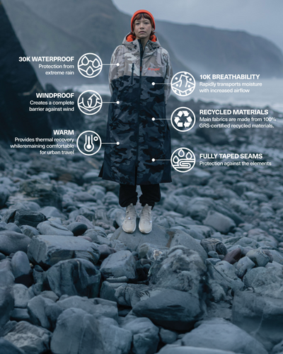 The Dryrobe® Nexus is the next generation of changing robes, bridging the gap between a technical change robe and a weatherproof parka. Refined for urban life, Nexus has a tailored fit and minimalist branding, without sacrificing the space you need to get changed inside.