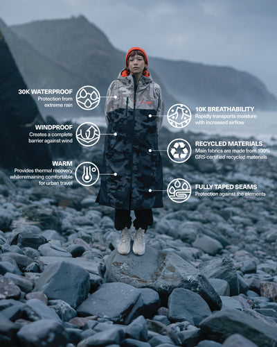 Bridging the gap between technical change robe and stylish parka, the Nexus offers a sleeker silhouette while providing the essential room to change when needed.